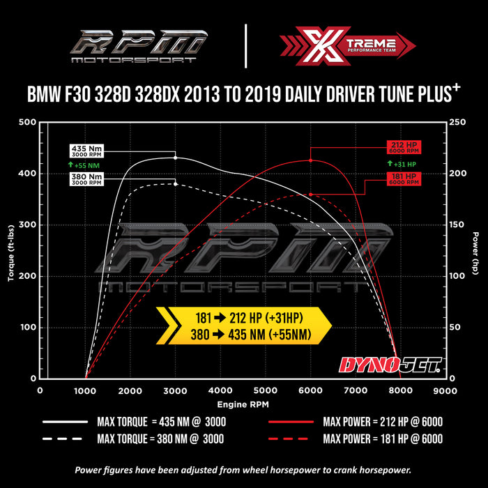 - Daily Driver Tune Plus power increase of +31HP & Torque increase of +55NM (41ft-lbs).