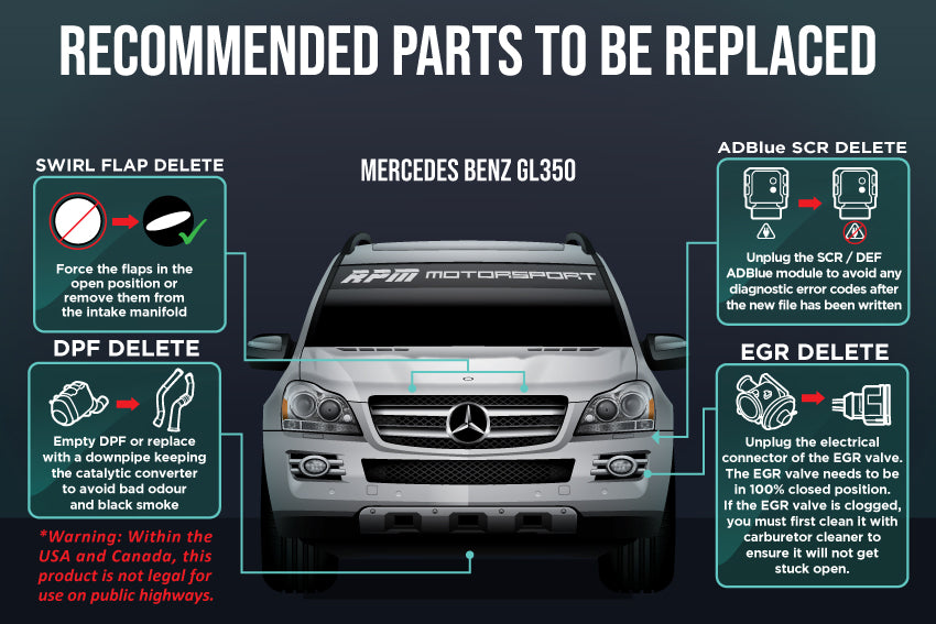 Mercedes Benz GL350 BlueTEC SCR / DPF / EGR Delete (EDC17CP10) Years 2009 to 2012